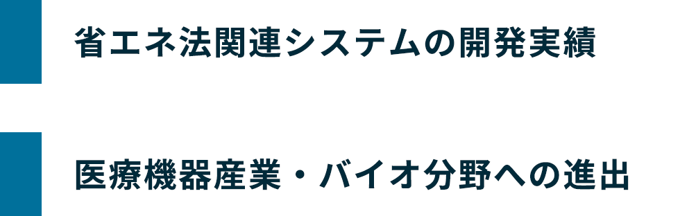 省エネ法に関連するシステム開発プロジェクトやバイオ・医療機器システムの開発といった、専門性と社会貢献度の高い業務を手掛けるプロフェッショナル集団です。