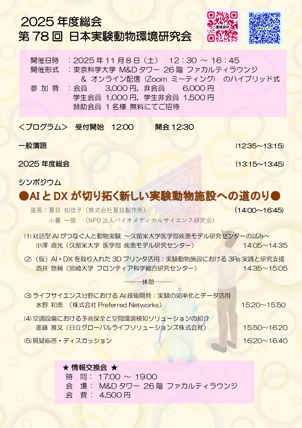 この度、日本実験動物環境研究会が実施するシンポジウム「AIとDXが切り拓く新しい実験動物施設への道のり」において、当社の 船橋 聡 が一般演題の枠で講演することが決定いたしましたので、お知らせいたします。